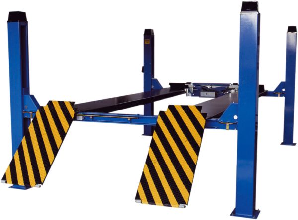 Diese 4-Säulen-Hebebühne ist als Annahme-, Achsmess- und Arbeitsbühne ideal und bietet viel Freiraum rund um das Fahrzeug.